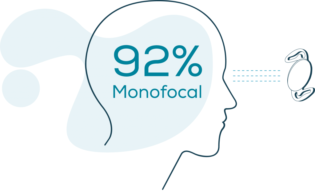 For everything else, you usually need glasses to focus the light as it enters your eye. Approximately 92% of people have this type of lens implanted during cataract surgery.